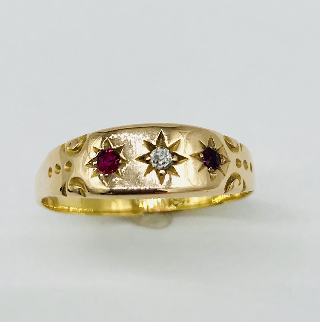 Edwardian 18ct Gold Diamond & Ruby Ring c.1905