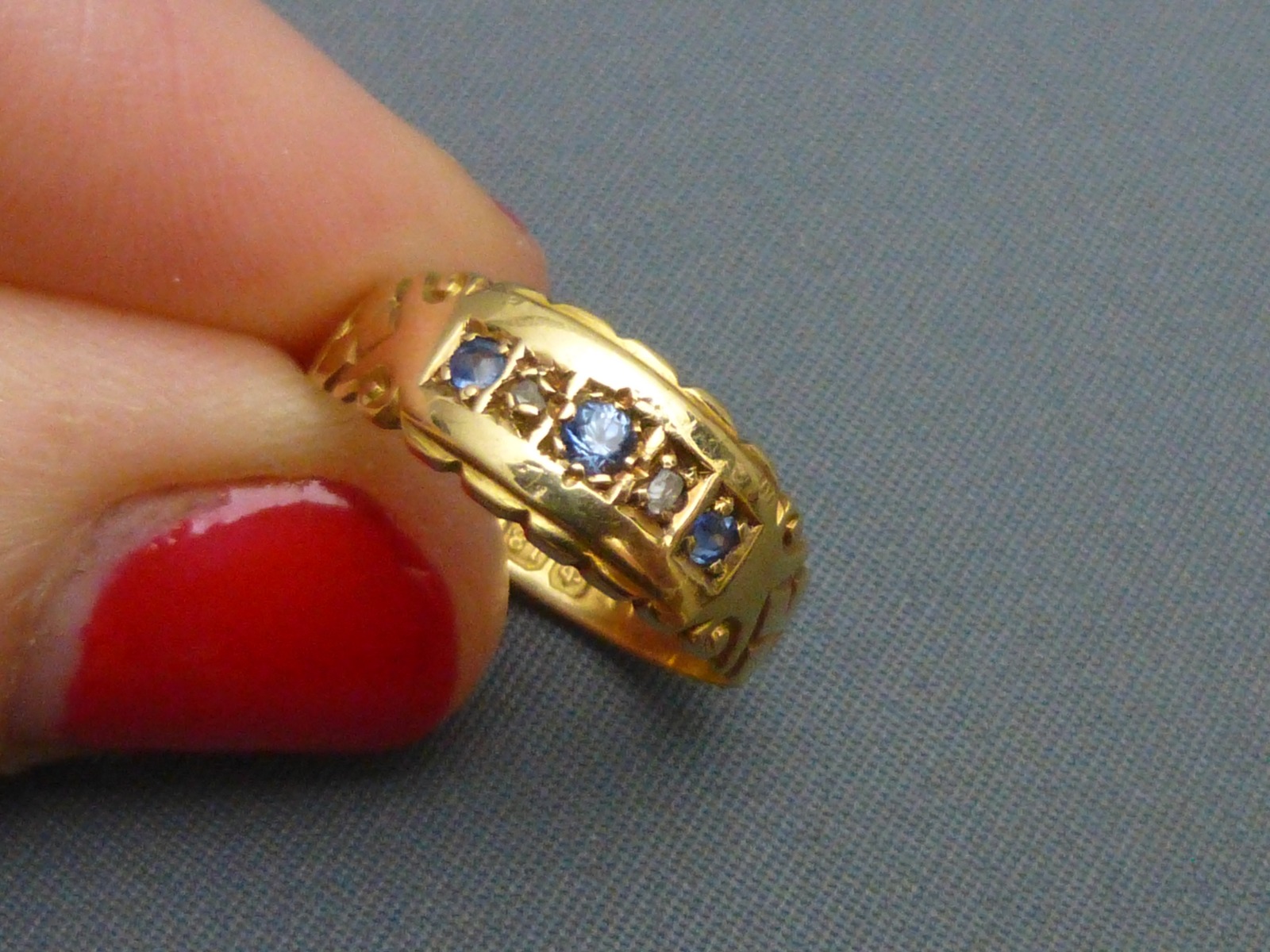 Edwardian 18ct Gold, Diamond & Sapphire Ring