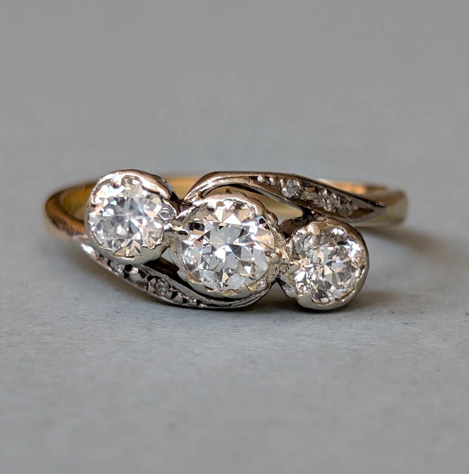 Edwardian 18ct Gold Diamond Three Stone Ring 0.90ct