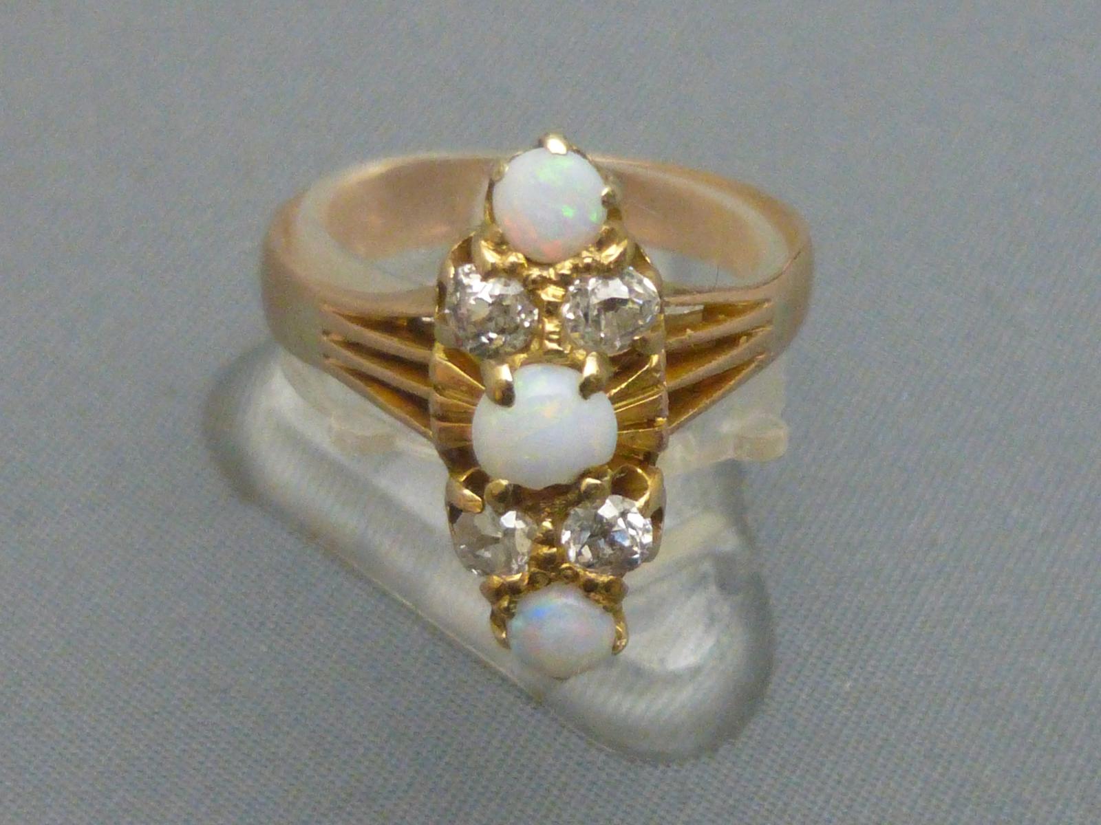 Edwardian 18ct Gold, Opal & Diamond Ring