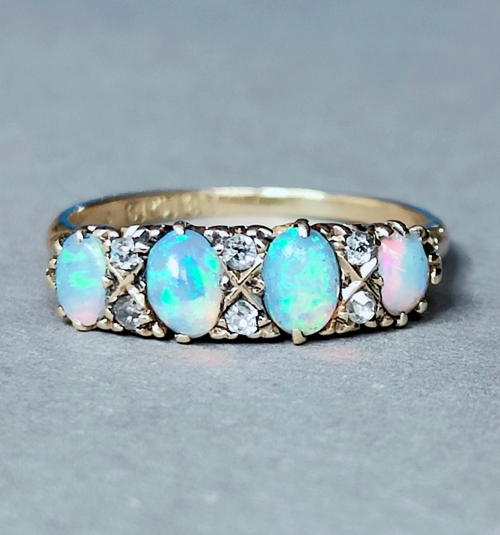 Edwardian 18ct Gold Opal Diamond Ring c.1904 (1 of 9)