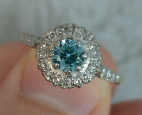 Edwardian 18ct Gold & Platinum Blue Zircon & Diamond Cluster Ring