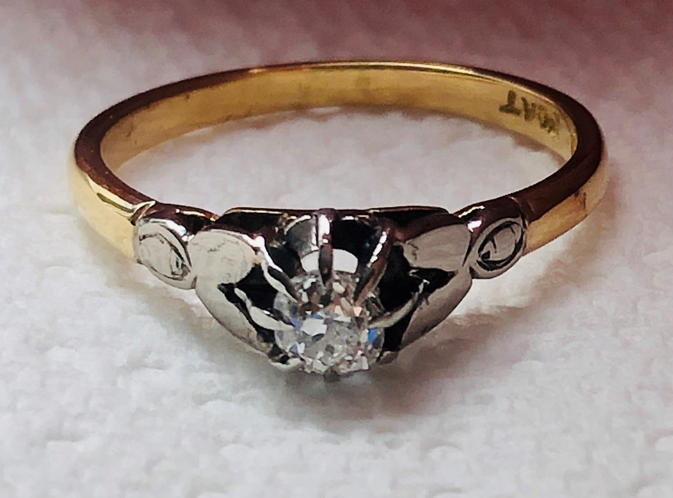 Edwardian 18ct Gold & Platinum Diamond Solitaire Ring