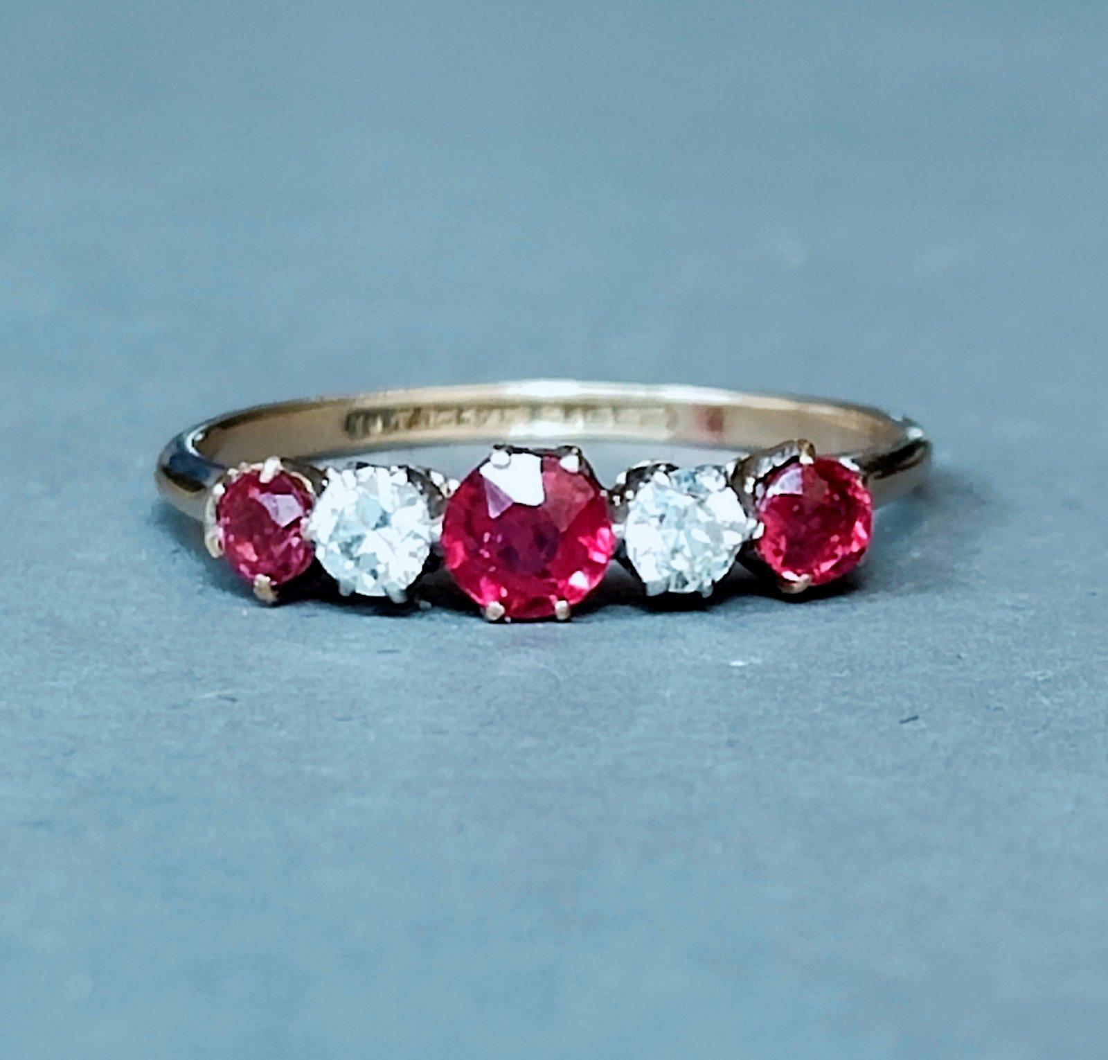 Edwardian 18ct Gold Platinum Ruby Diamond Ring (1 of 11)