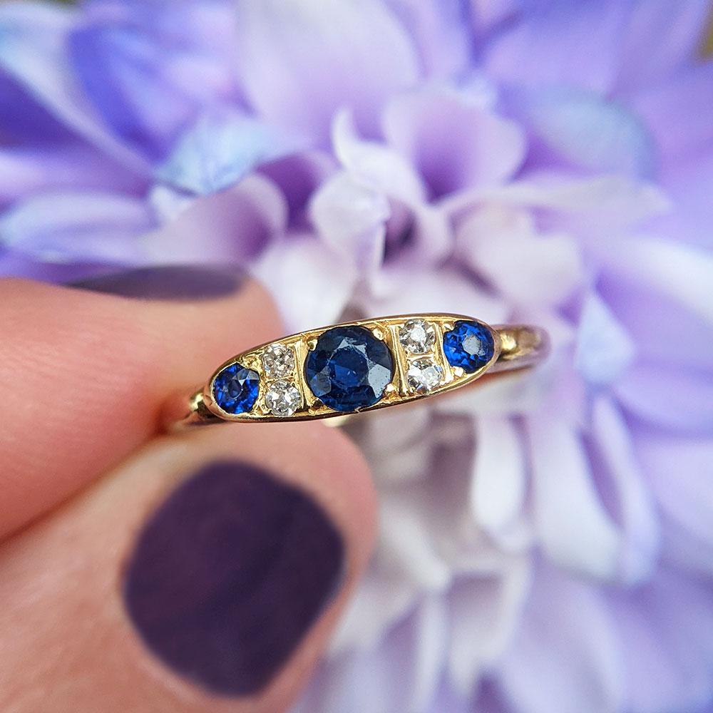 Edwardian 18ct Gold Sapphire & Diamond Boat Ring