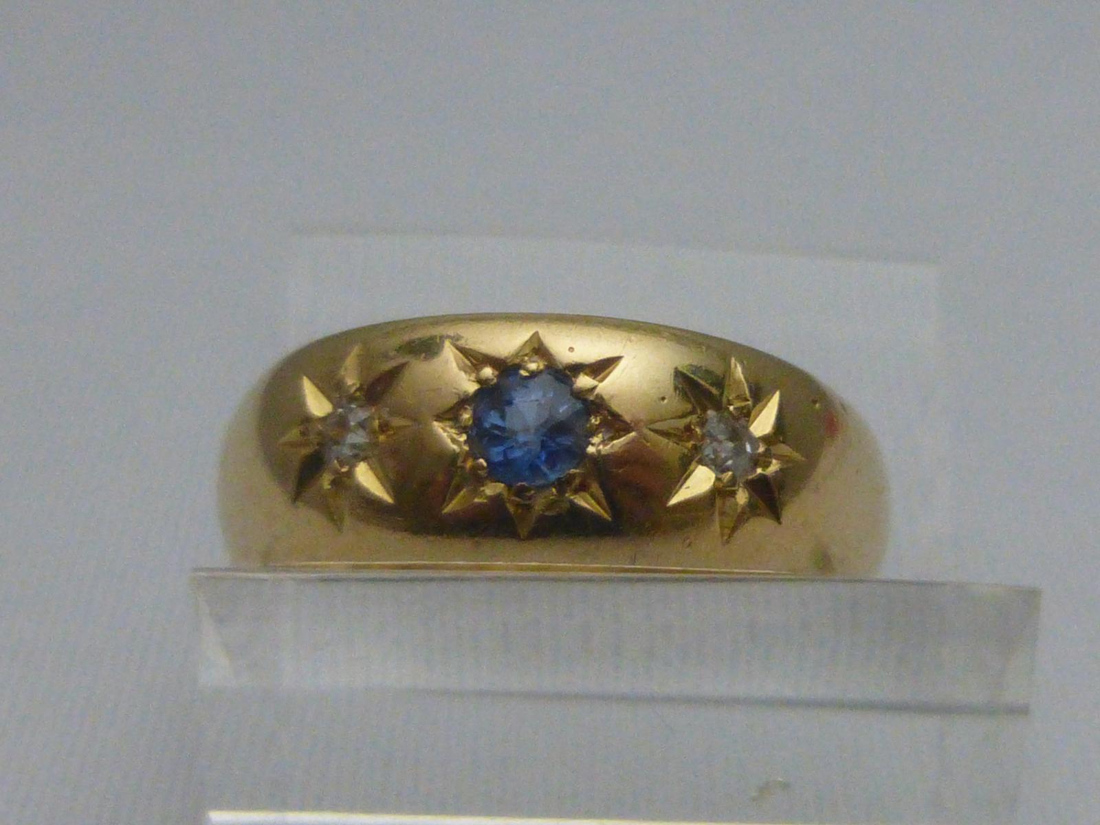 Edwardian 18ct Gold Sapphire & Diamond Gypsy Ring