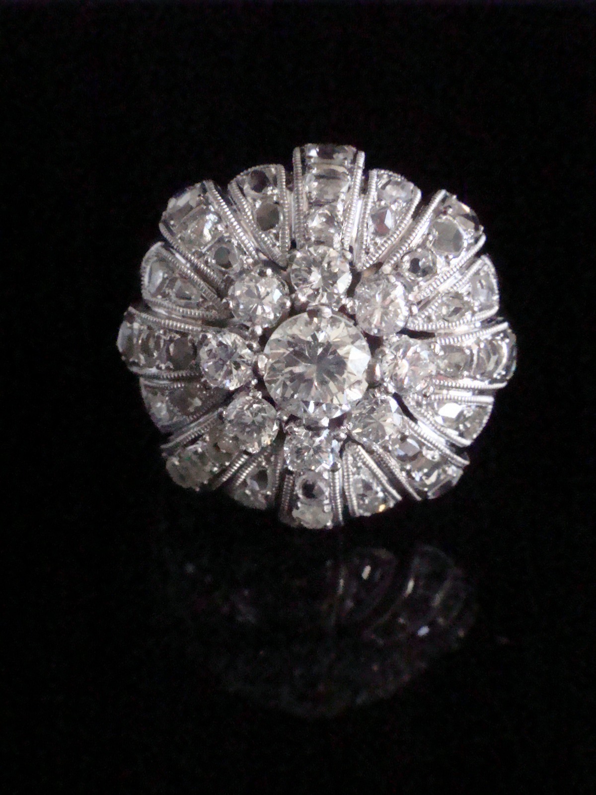 Edwardian 18ct White Gold French Old and Rose Cut Diamond Bombe Ring