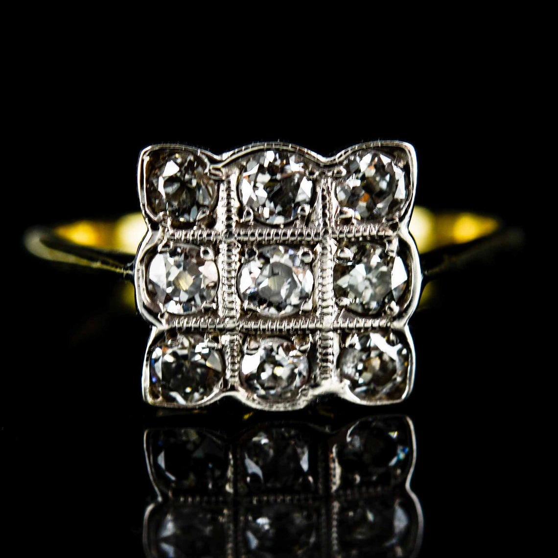 Edwardian 18ct Yellow Gold Diamond Square Cluster Ring