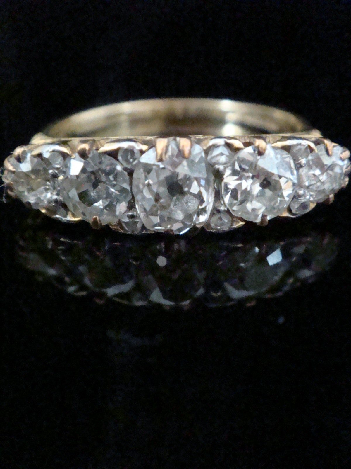 Edwardian 18ct Yellow Gold Old Cut Diamond 5 Stone Ring 2.30ct
