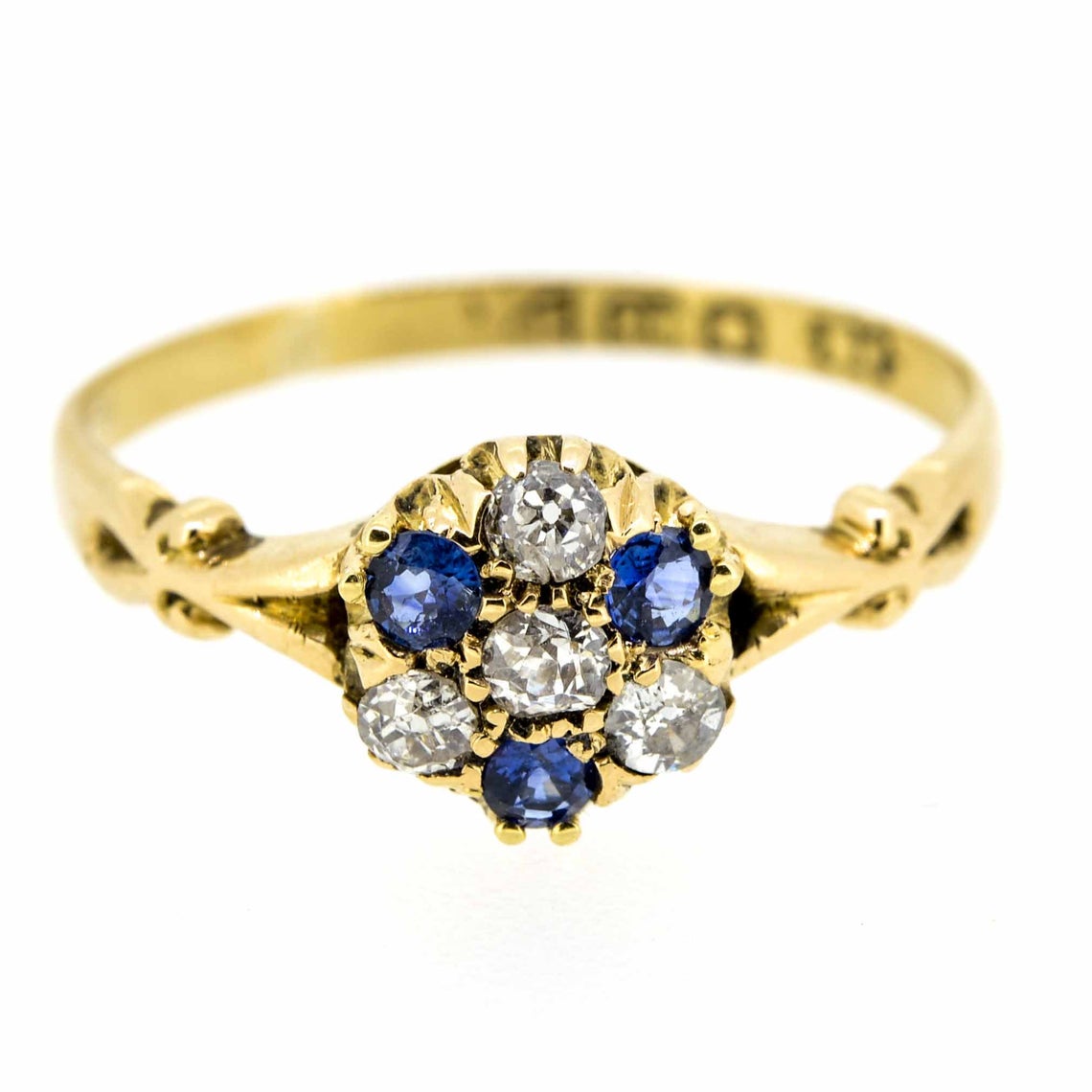Edwardian 18ct Yellow Gold Sapphire & Diamond Cluster Ring