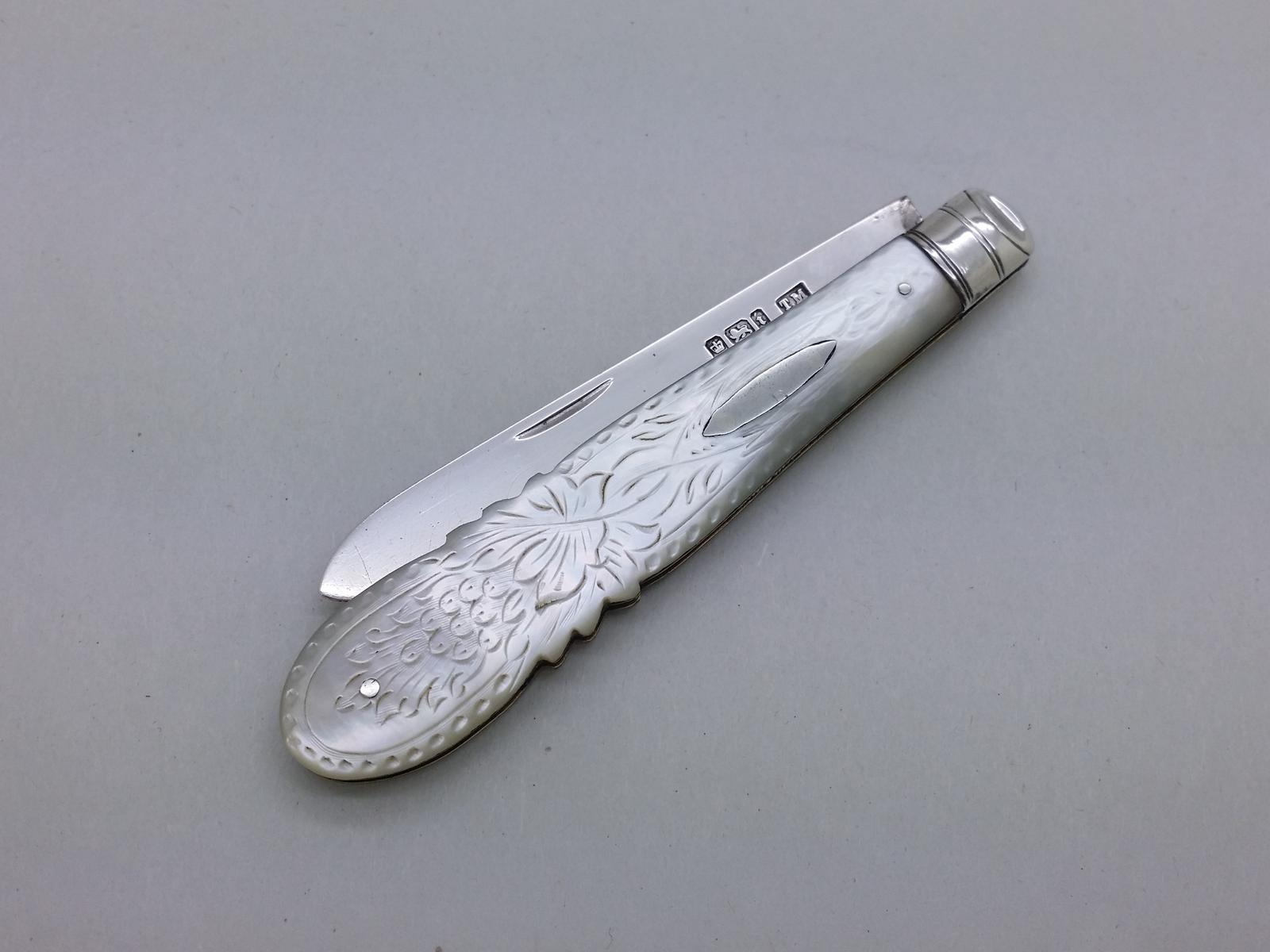 Edwardian 1901 Sterling Silver & Mother of Pearl Fruit Knife Hallmarked Sheffield