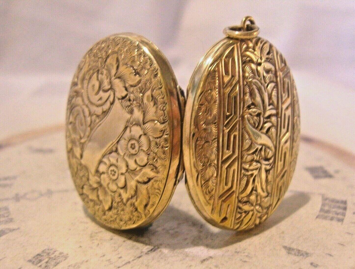 Edwardian 1907 Pocket Watch Chain Photograph Fob Large Antique Ornate Brass Fob