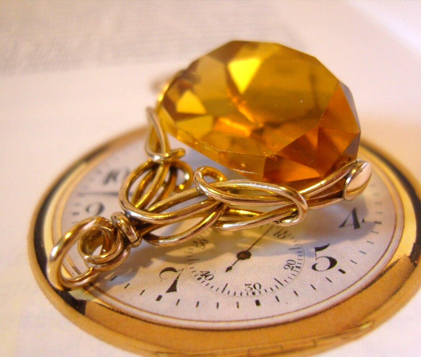 Edwardian 1910 Swivel Fob 10ct Gold Filled Pocket Watch Chain Large Citrine Fob