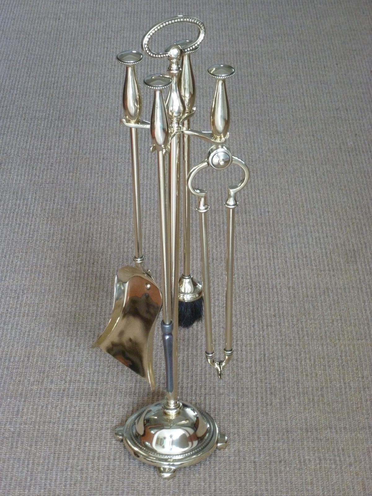 Edwardian 5 Piece Brass Companion Set Brass Fire Tools on Stand