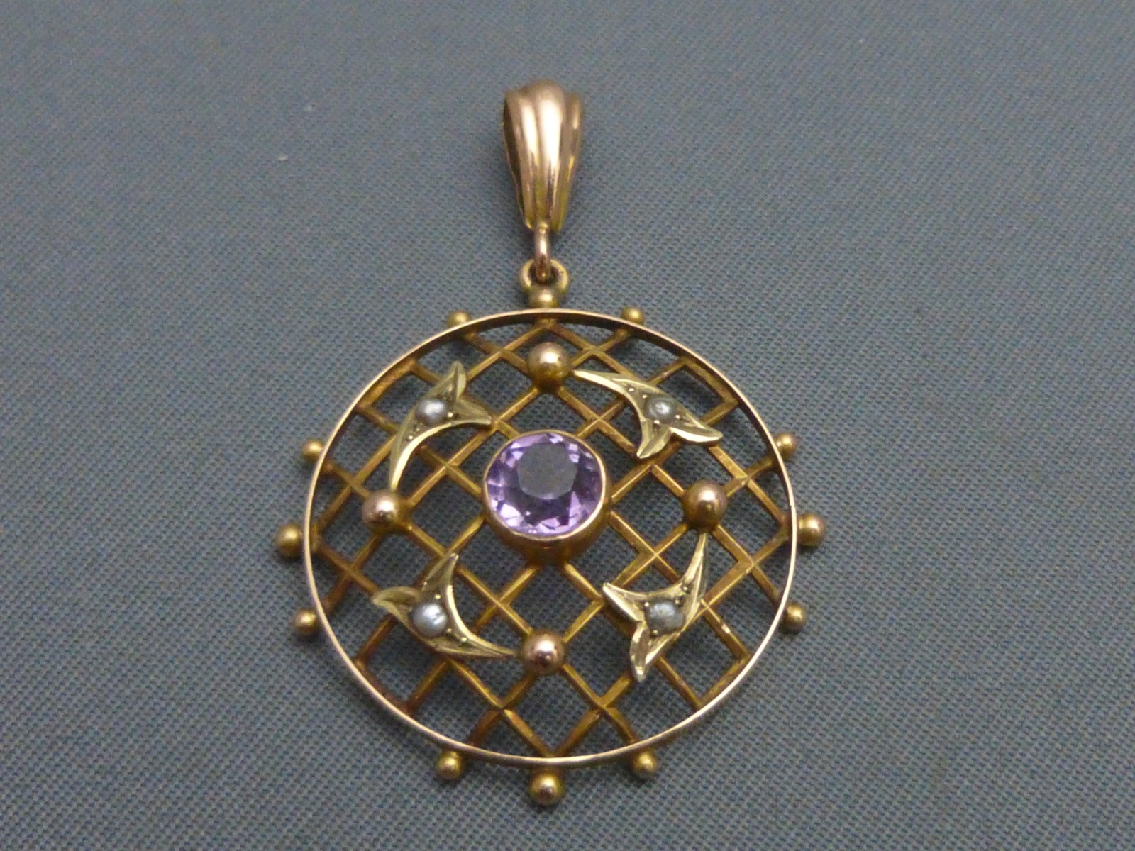 Edwardian 9ct Gold, Amethyst & Pearl Pendant