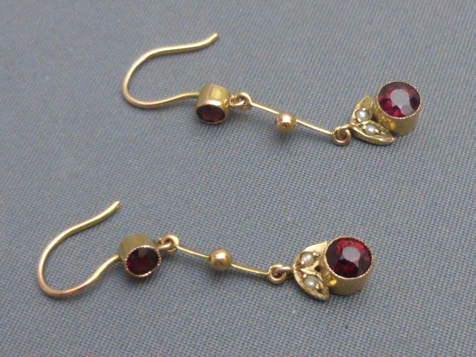 Edwardian 9ct Gold, Garnet & Seed Pearl Earrings