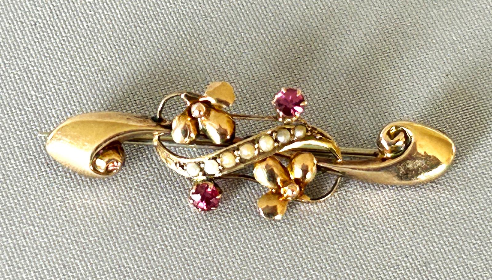 Edwardian 9ct Gold Pearl & Rose Amethyst Brooch (1 of 6)