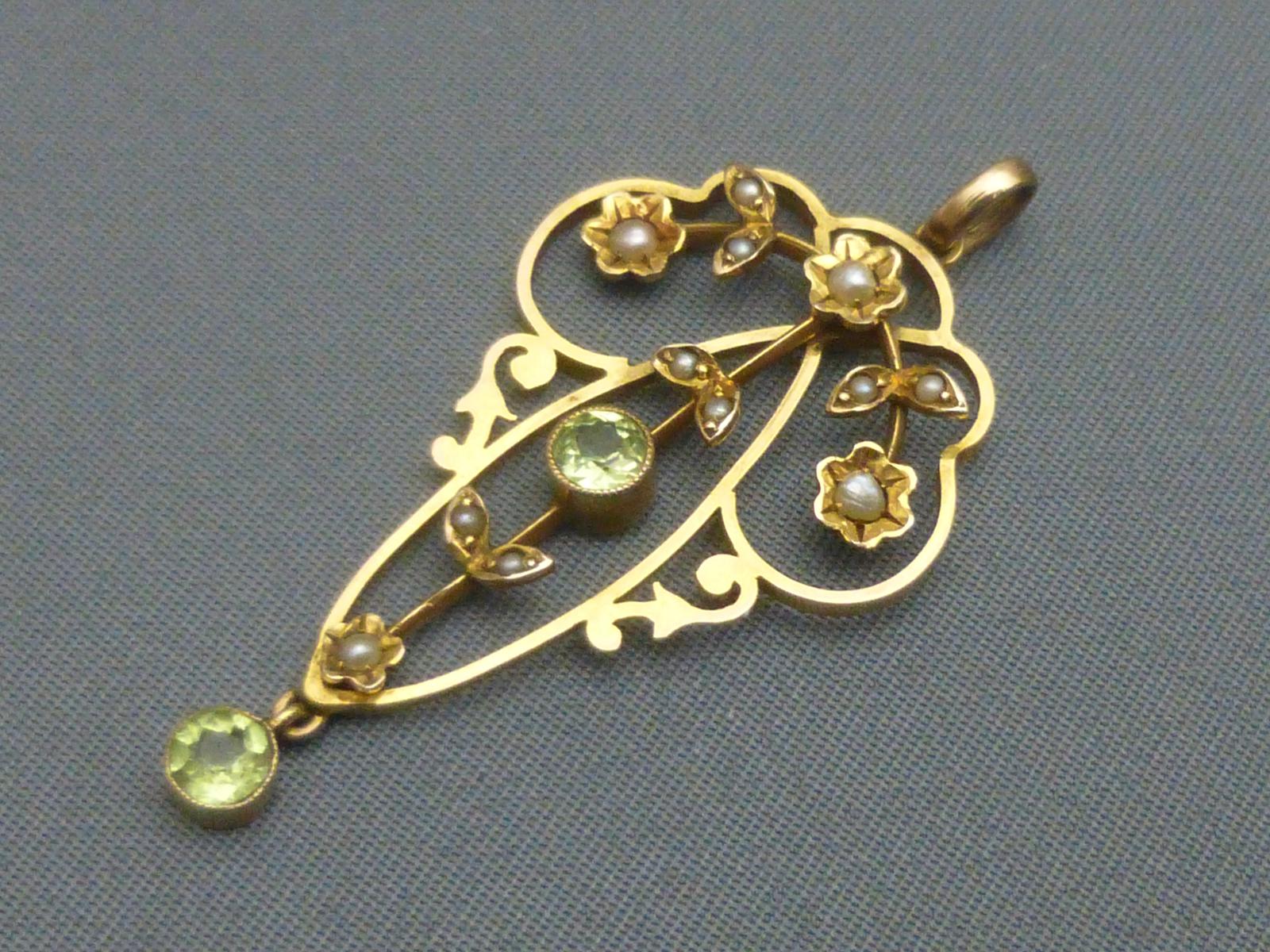 Edwardian 9ct Gold, Peridot & Pearl Pendant