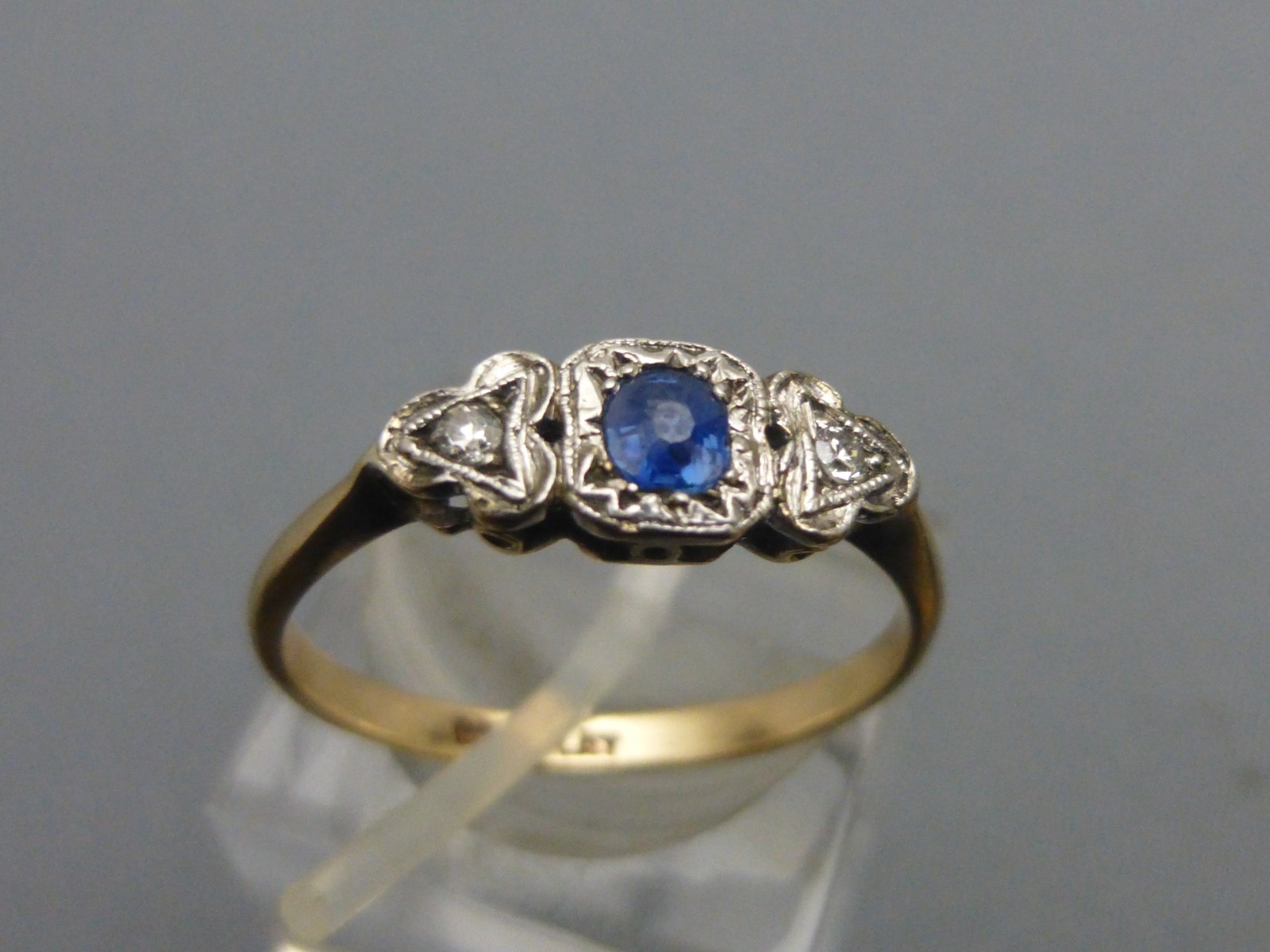 Edwardian 9ct Gold, Platinum, Diamond & Sapphire Ring