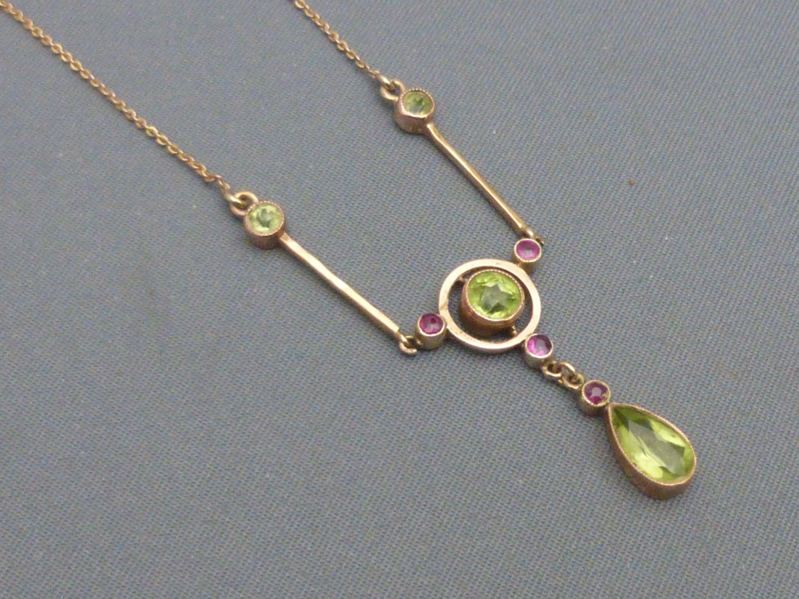 Edwardian 9ct Gold, Ruby & Peridot Necklace
