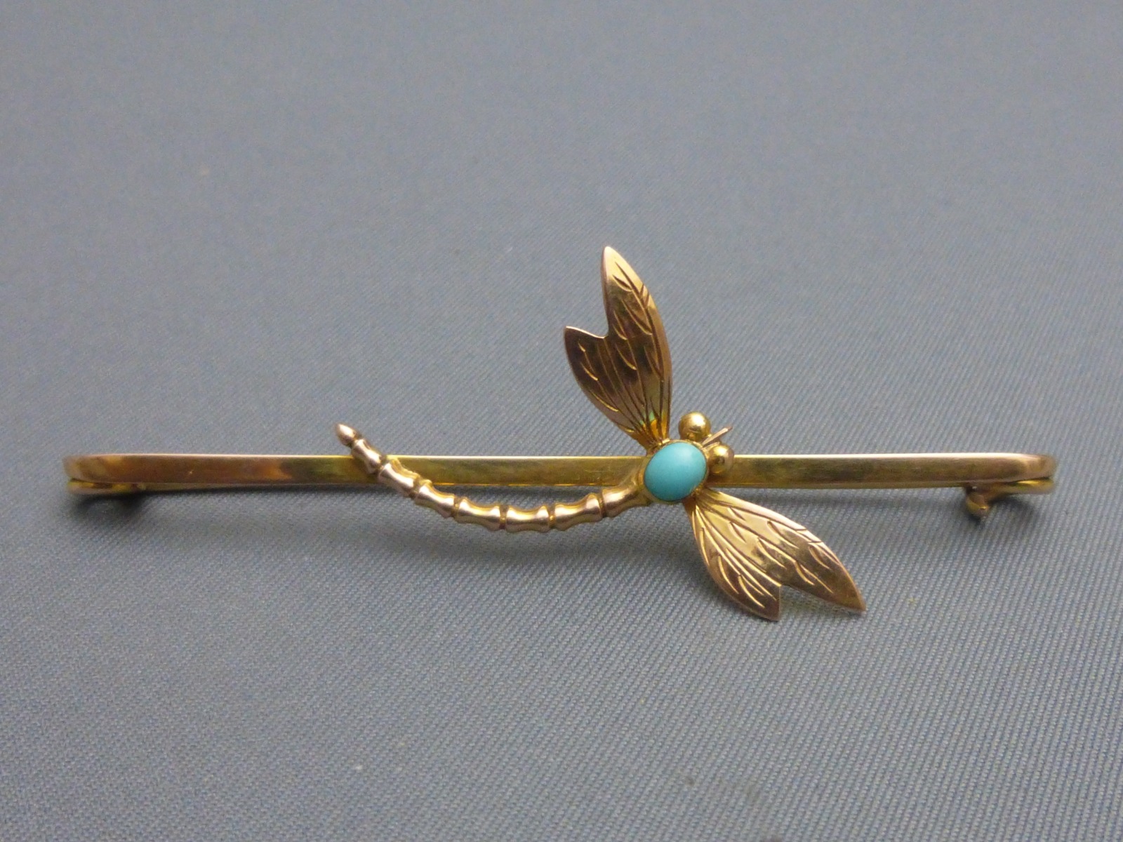 Edwardian 9ct Gold & Turquoise Dragonfly Brooch