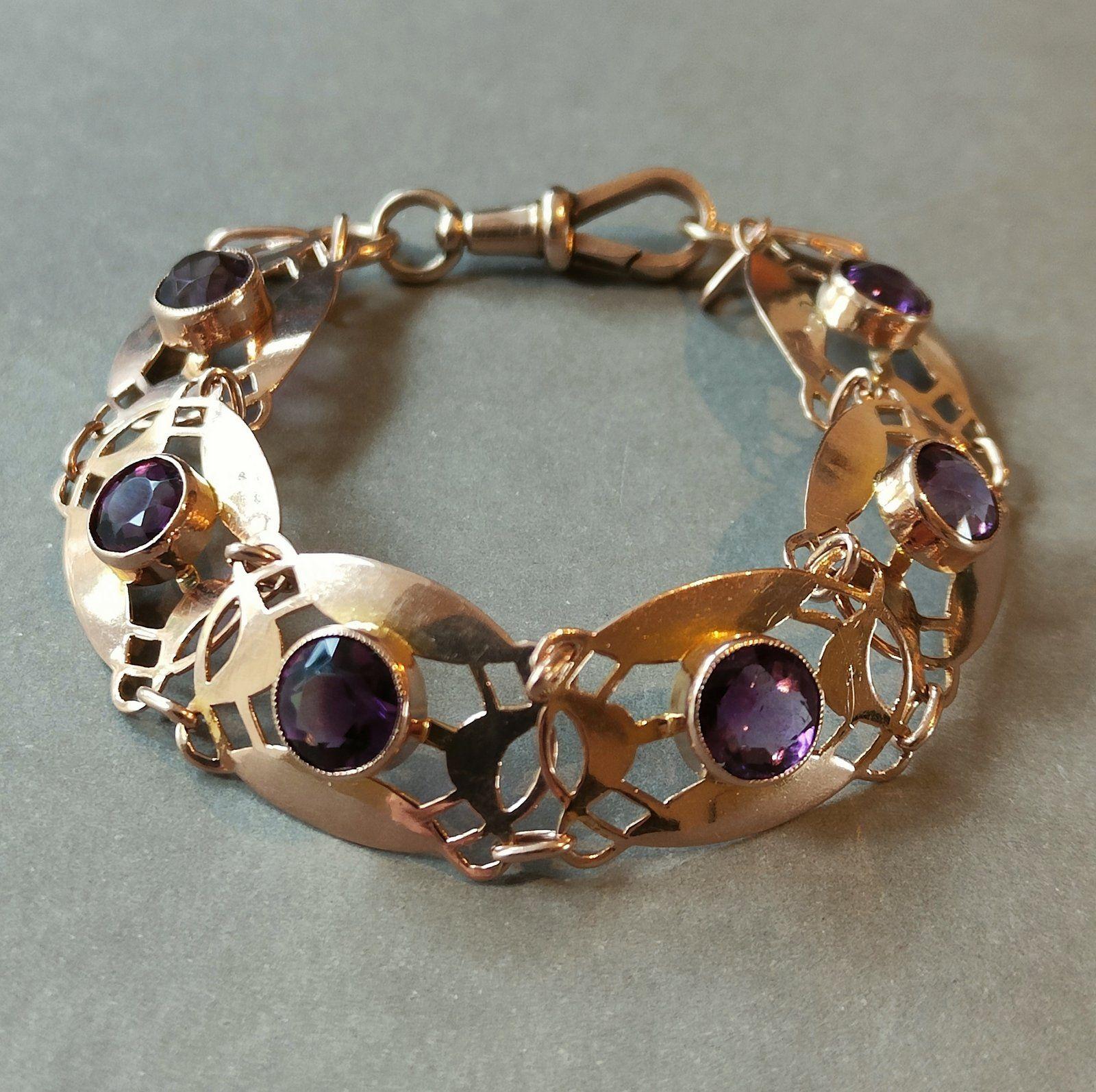 Edwardian 9ct Rose Gold Bracelet Amethyst Art Nouveau