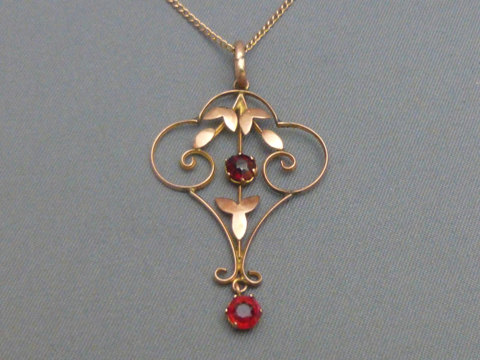 Edwardian 9ct Rose Gold & Garnet Pendant Chain