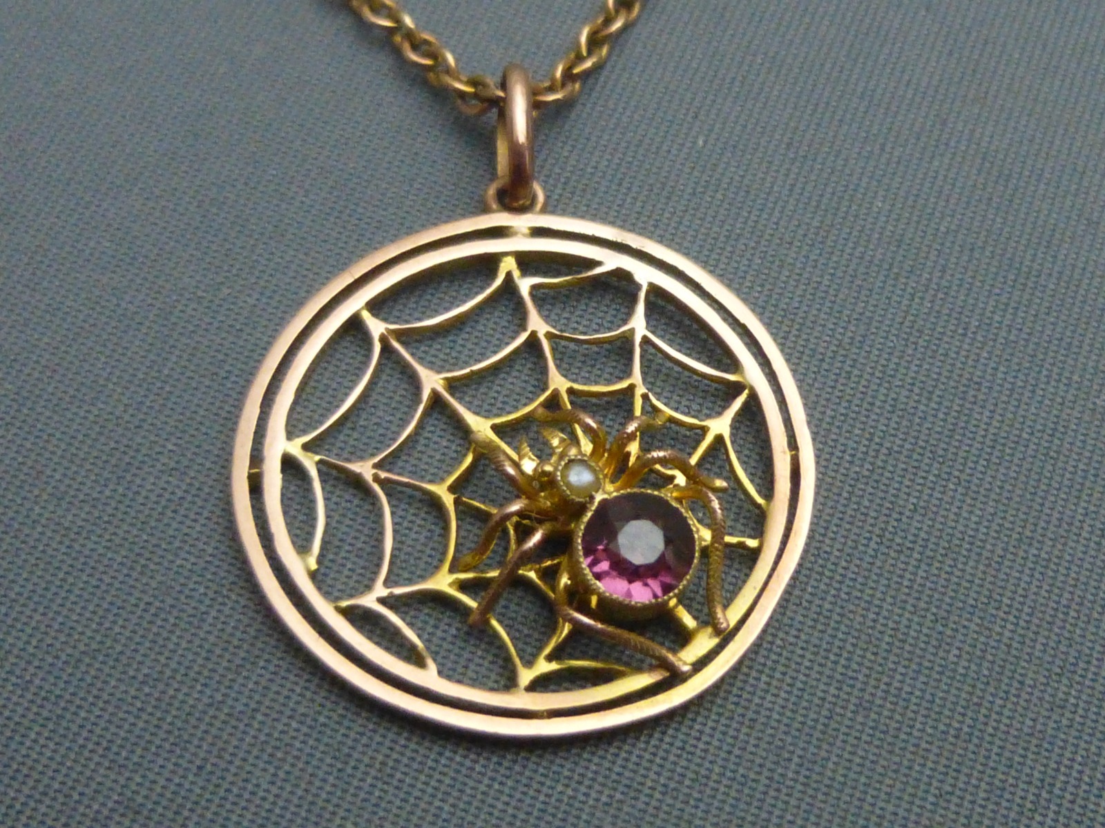Edwardian 9ct Rose Gold Spider Pendant & Chain