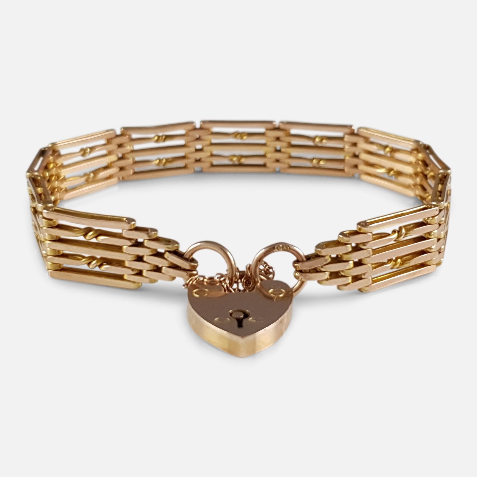 Edwardian 9ct Yellow Gold Fancy Gate Link Bracelet