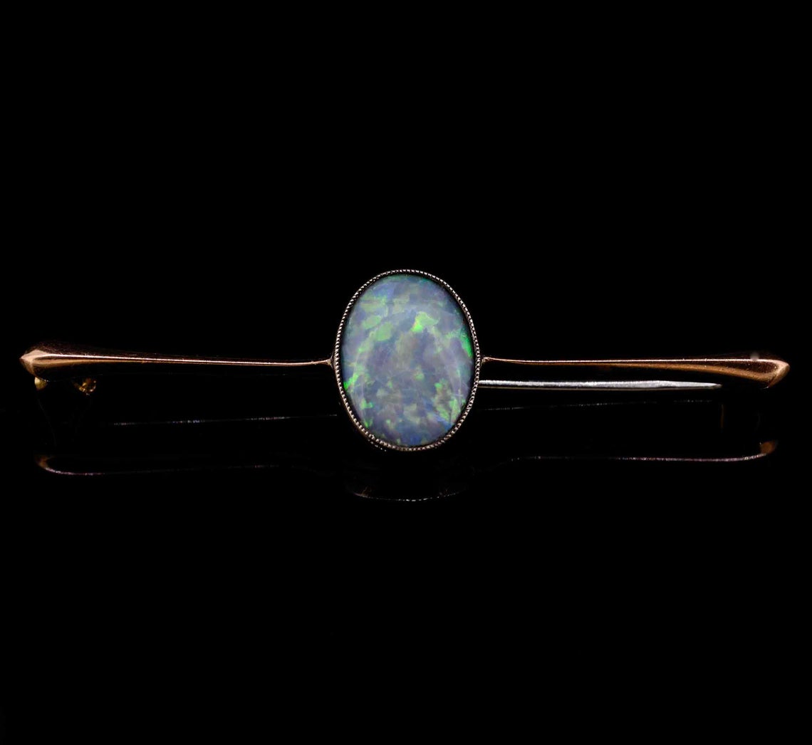 Edwardian 9ct Yellow Gold Opal Bar Brooch
