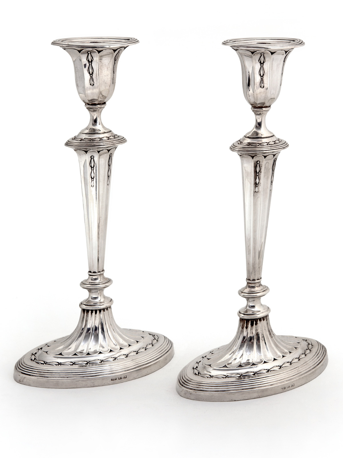 Edwardian Adams Style Silver Candlesticks with Fluted Columns (1 of 4)