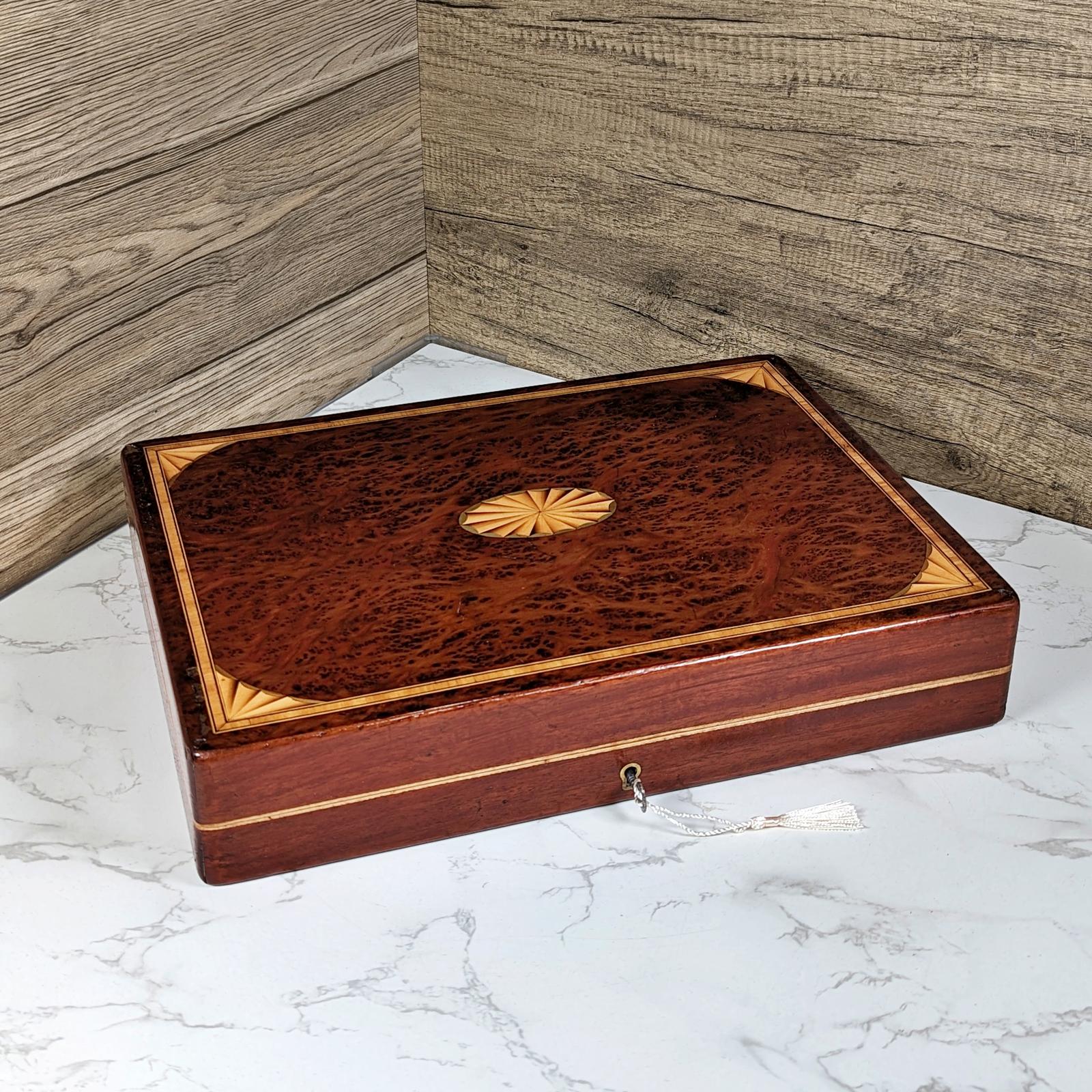 Edwardian Amboyna & Mahogany Document / Laptop Box