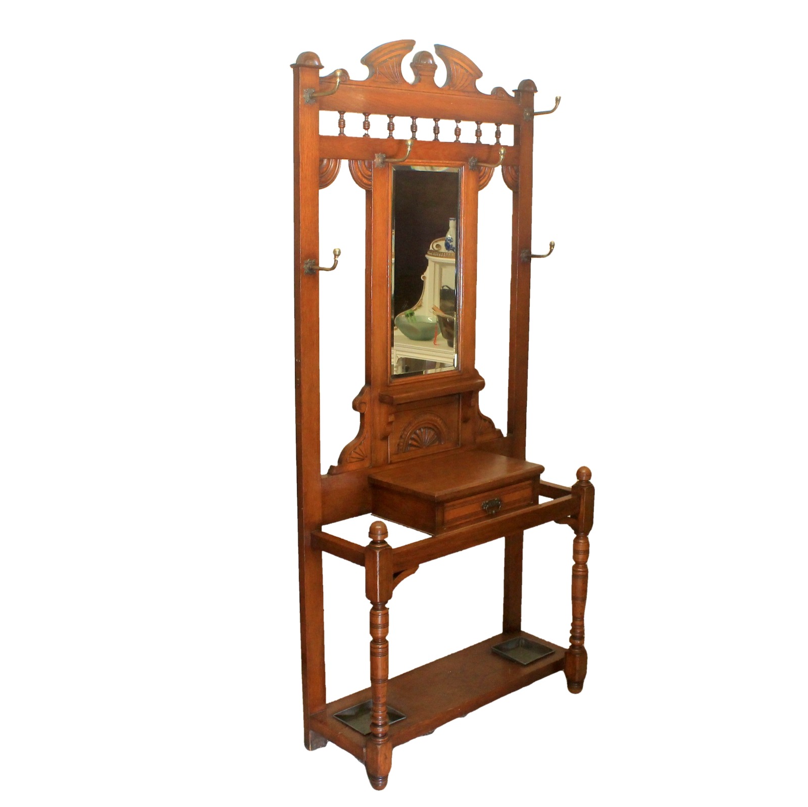 Edwardian Antique Mahogany Coat & Umbrella Hall Stand
