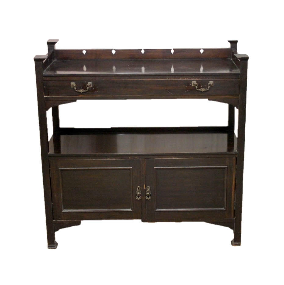 Edwardian Antique Mahogany Serving Counter with Cupboard & Shelf Below