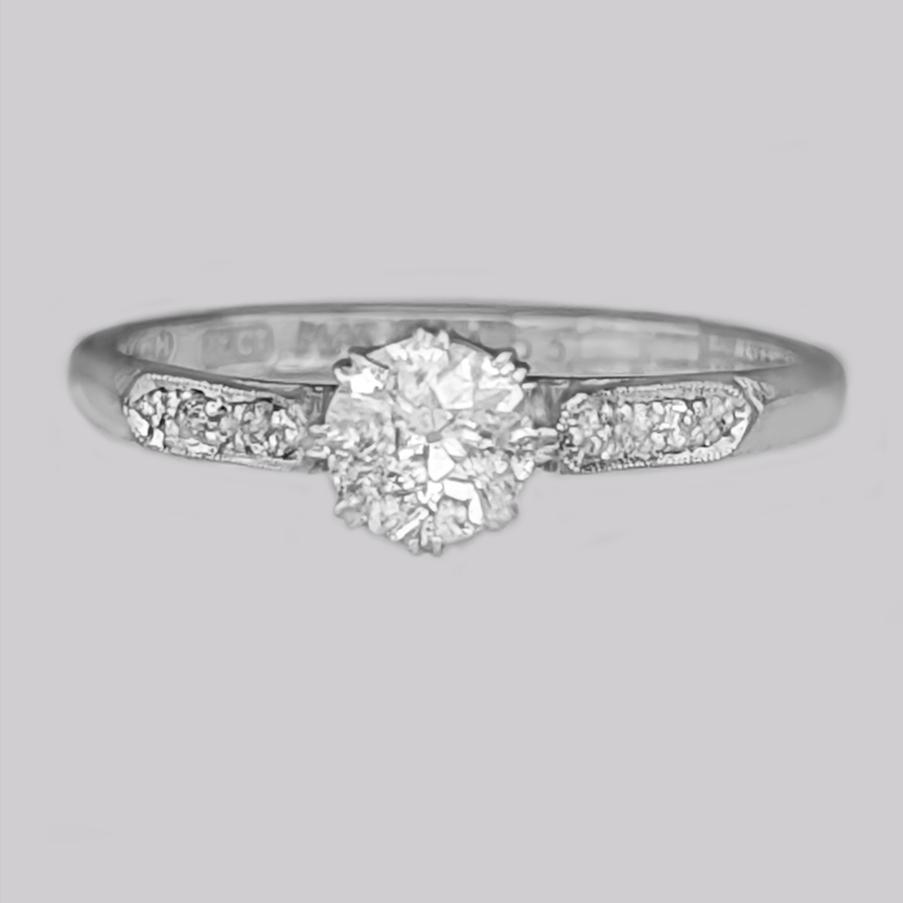 Edwardian Antique Platinum Diamond Solitaire 0.60ct Engagement Ring