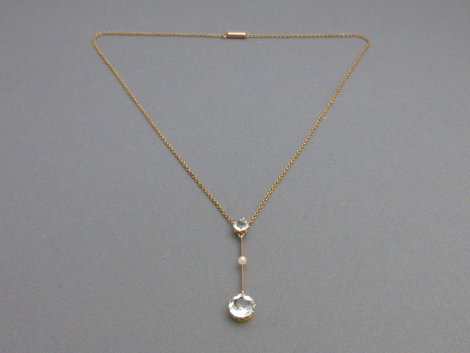 Edwardian Aquamarine & Pearl 9ct Gold Necklace