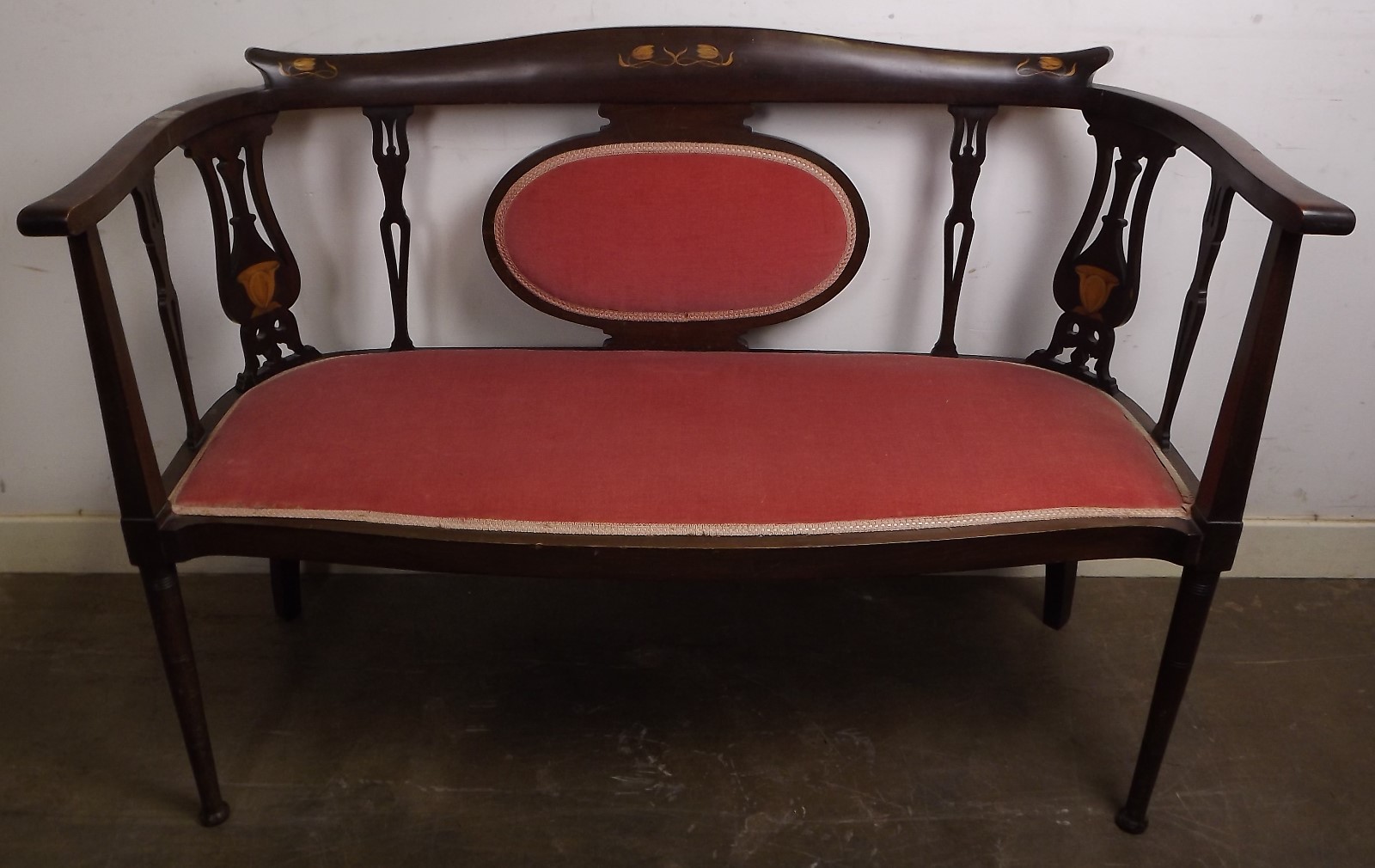 Edwardian Art Nouveau Inlaid Mahogany Parlour Sofa c.1905