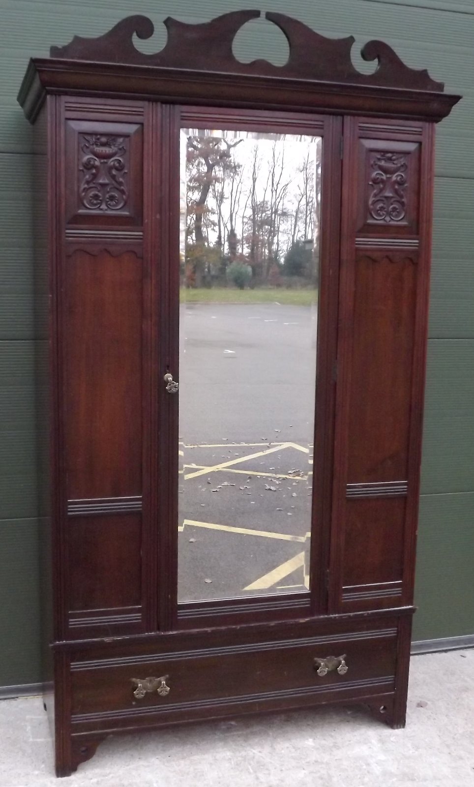 Edwardian Art Nouveau Style Mahogany Single Wardrobe