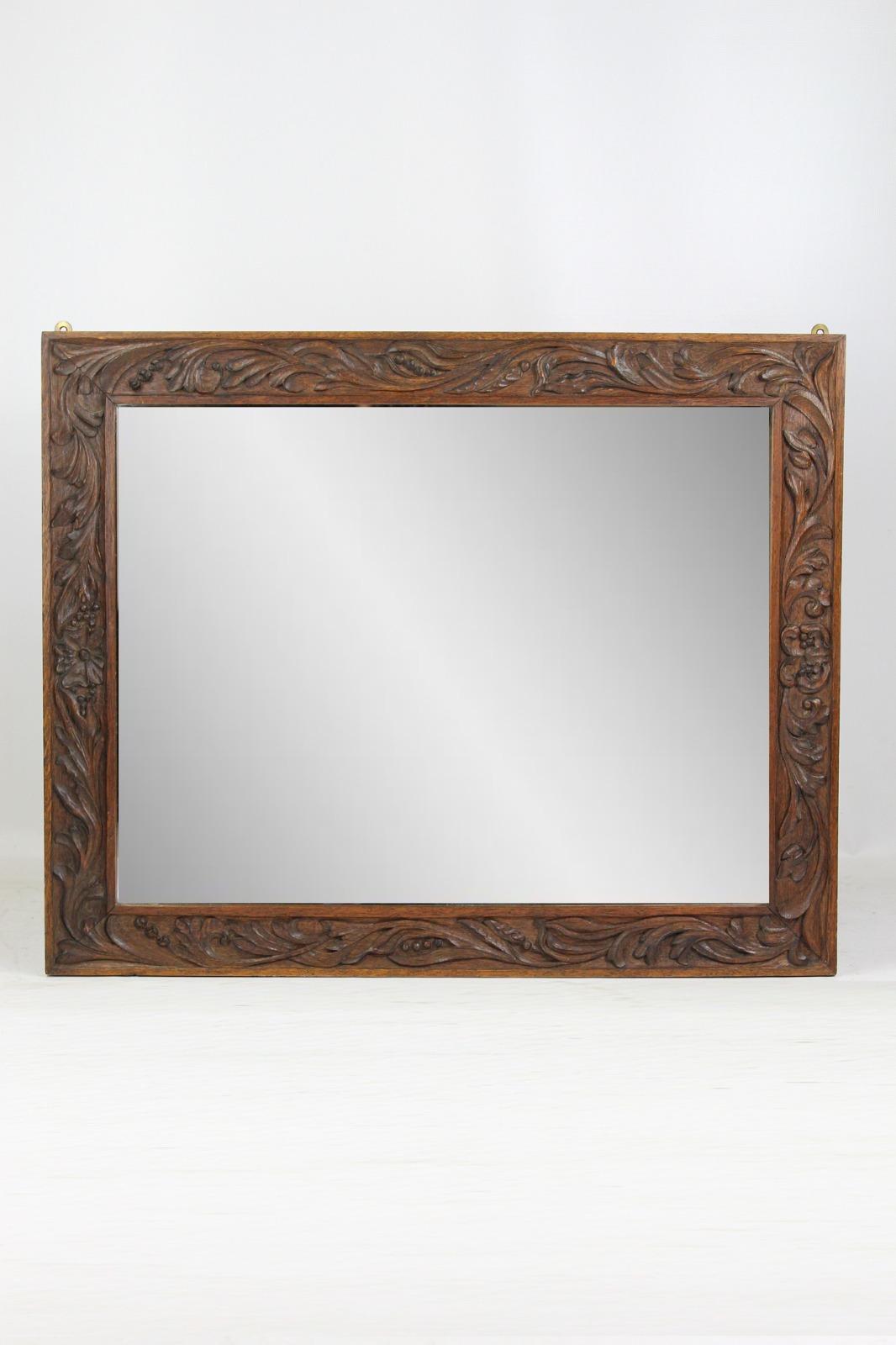 Edwardian Arts & Crafts Carved Oak Mirror (1 of 1)