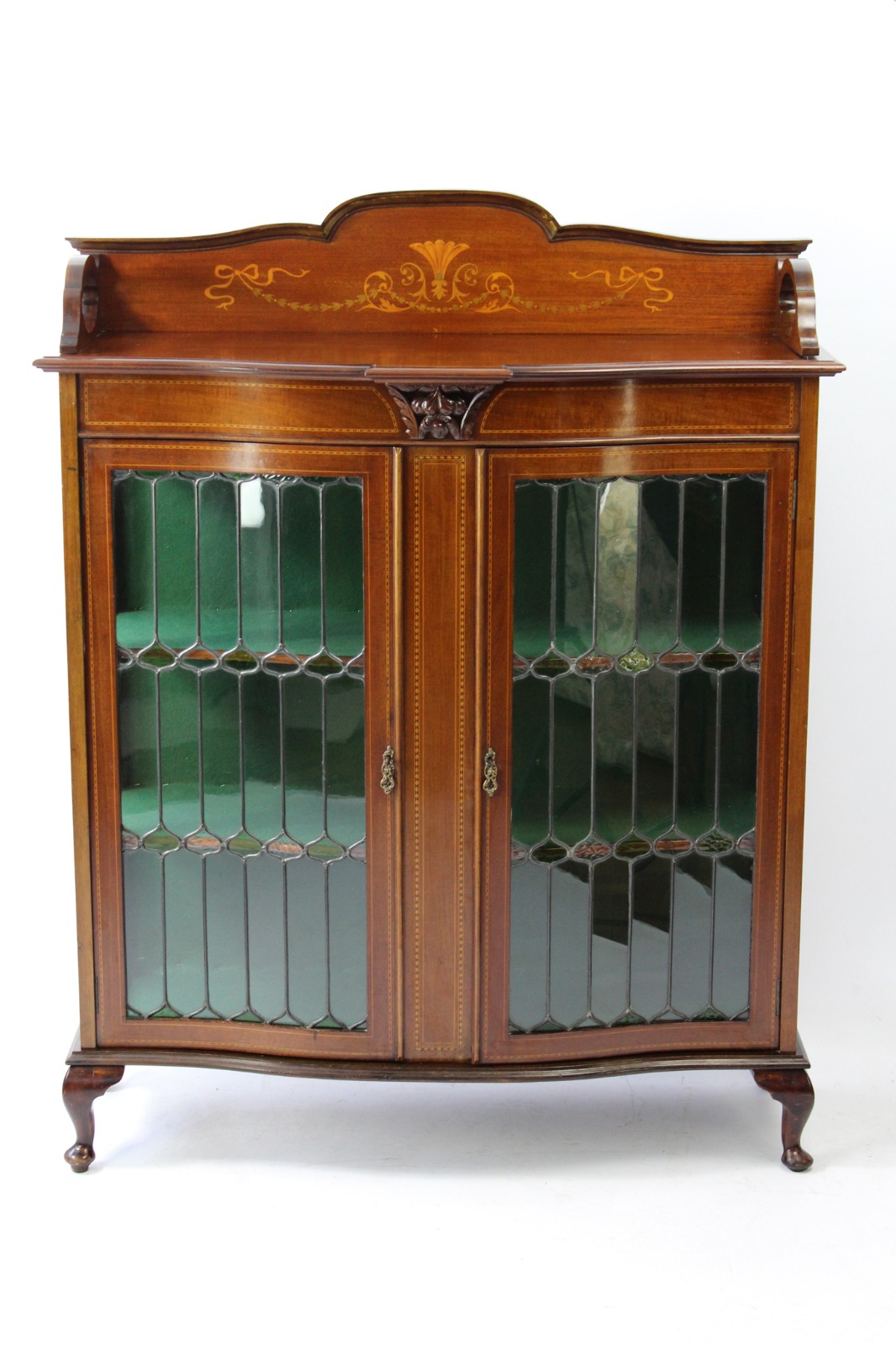 Edwardian Arts & Crafts Mahogany Inlaid Display Cabinet / Bookcase