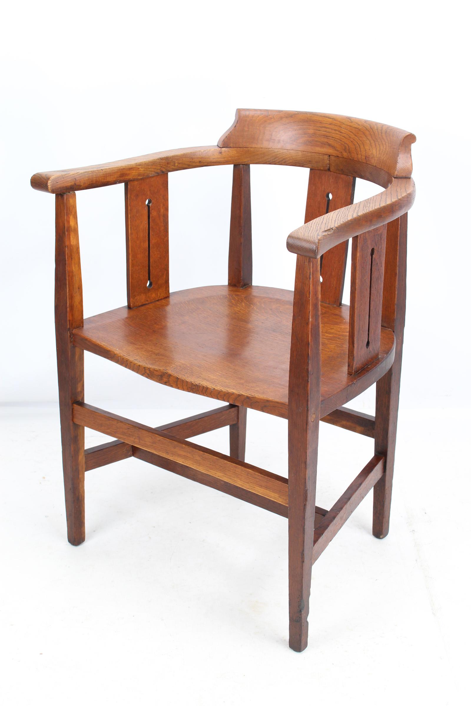 Edwardian Arts & Crafts Oak Desk Chair / Captains Armchair