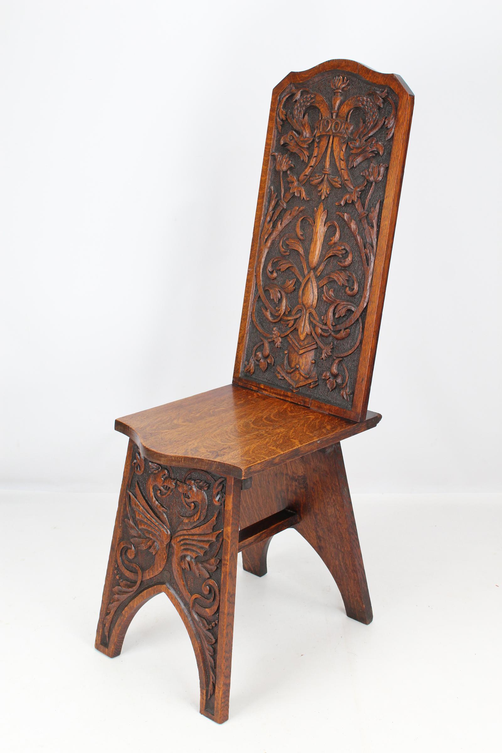 Edwardian Arts & Crafts Oak Hall Chair Dated 1904 (1 of 13)