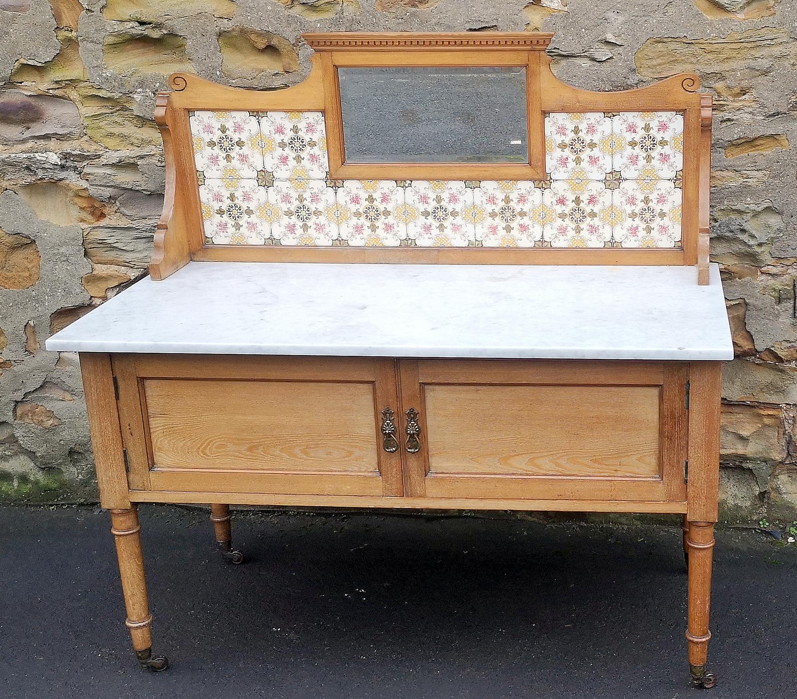 Edwardian Ash Marble Top Washstand