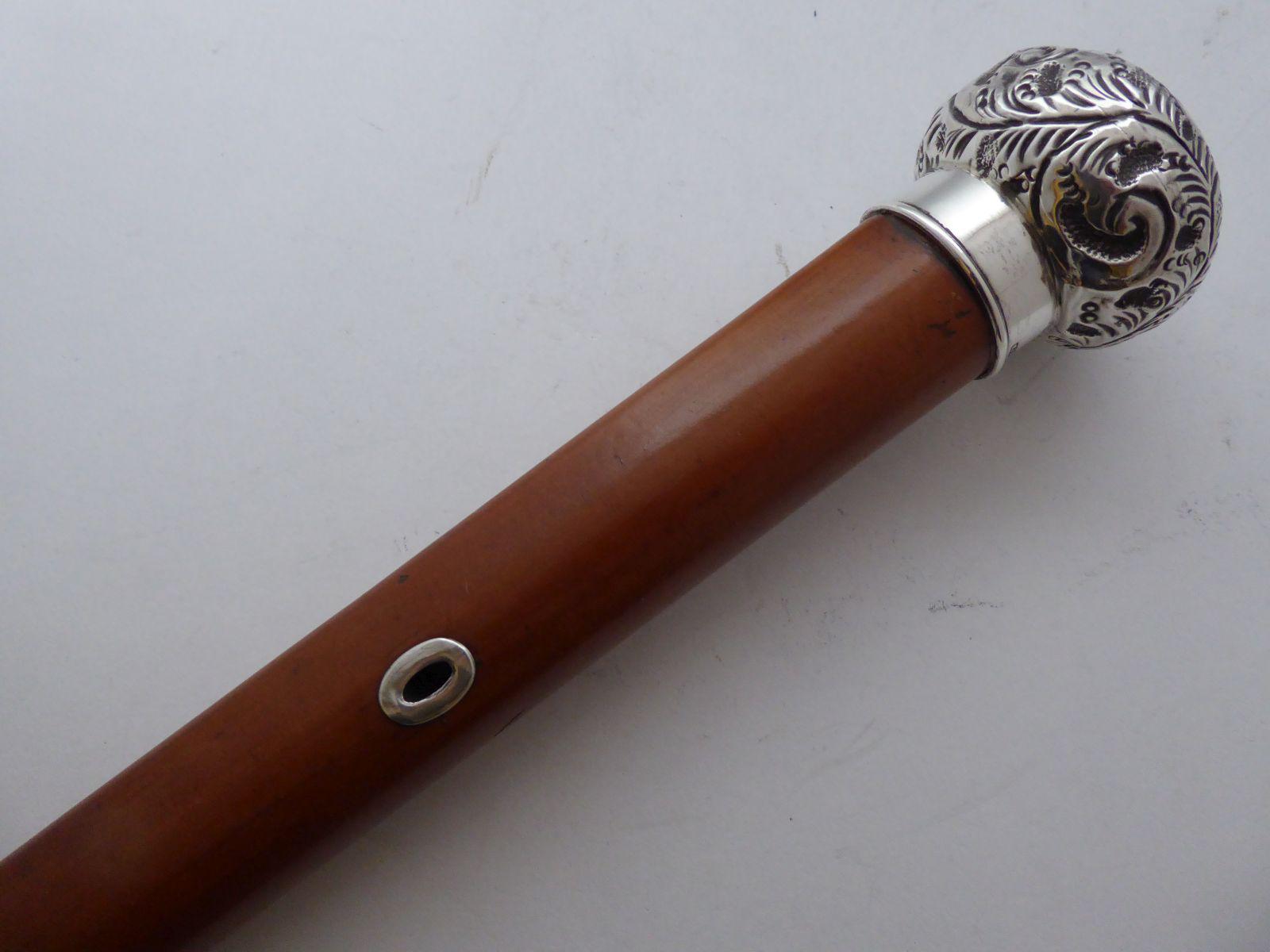 Edwardian Bailiff Walking Stick Cane 1903 Solid Silver Pommel Malacca Shaft