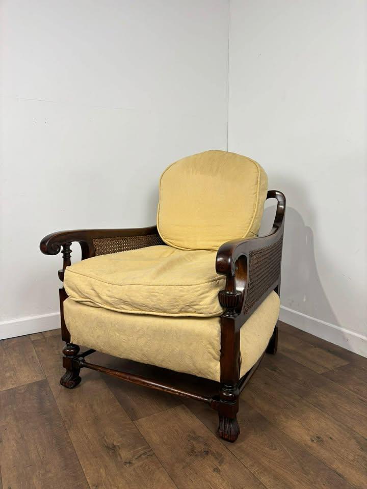 This Edwardian Beech Framed Bergère Armchair is located in Wrexham, United Kingdom