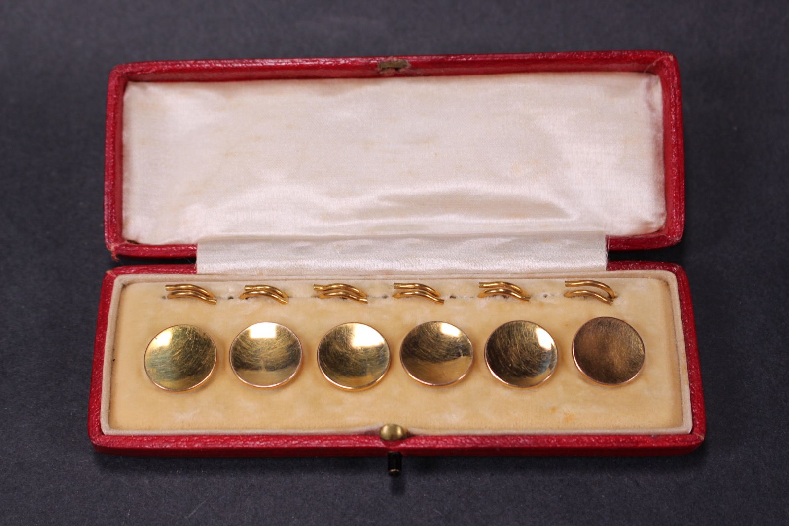 Edwardian Boxed Set of Six 9ct Gold Studs by Saunders & Shepherd