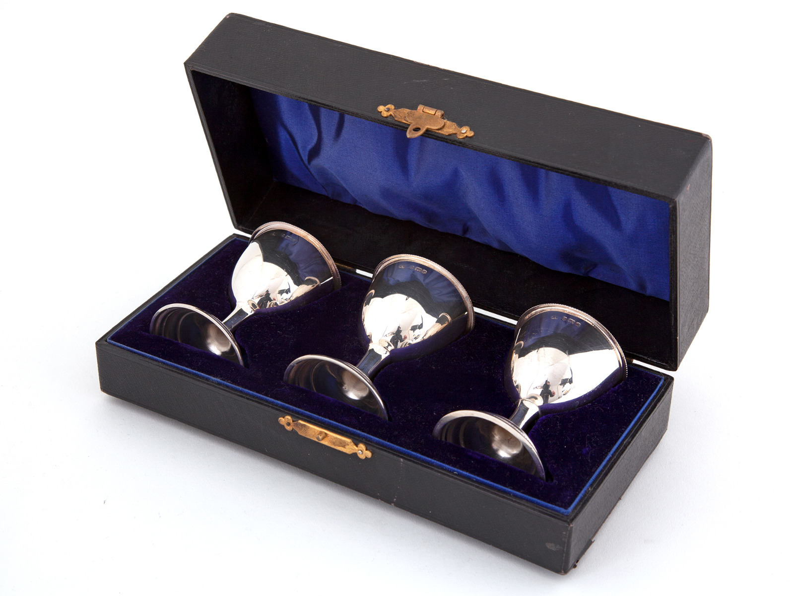 Edwardian Boxed Set of Three Plain Bodied Silver Egg Cups