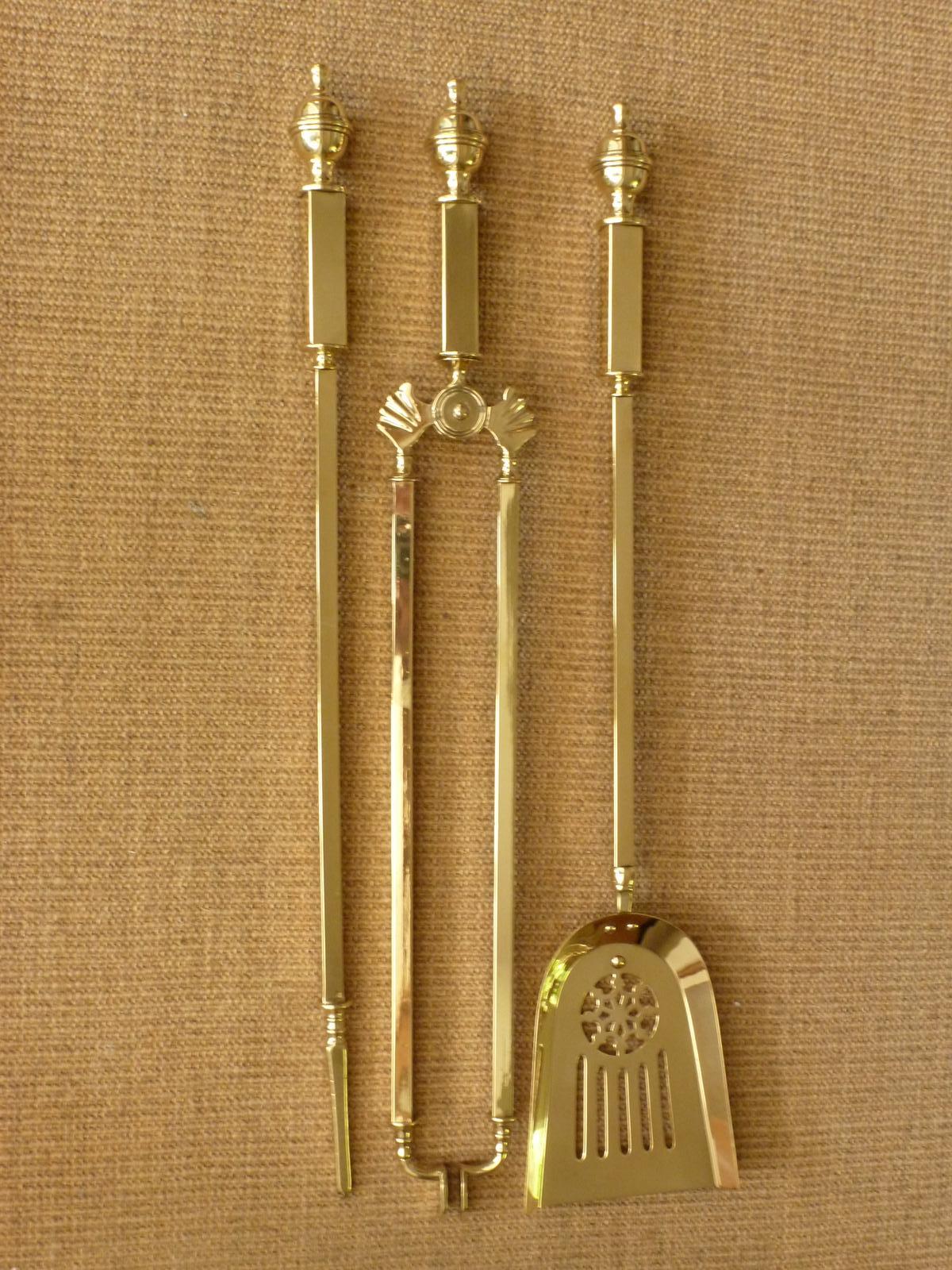 Edwardian Brass Fire Tools Poker Tongs Shovel Fire Irons c.1908