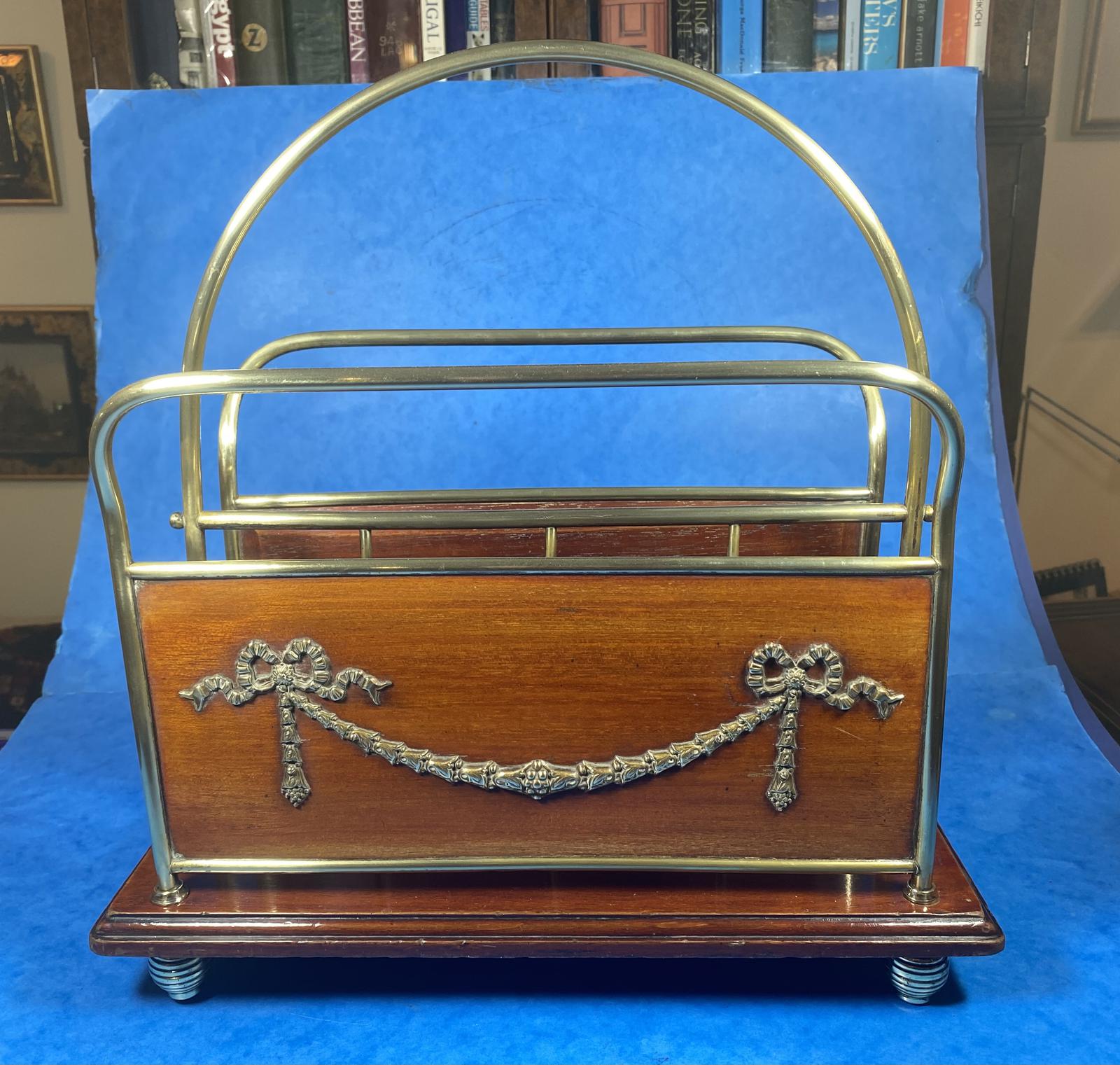Edwardian Brass & Mahogany Magazine Rack