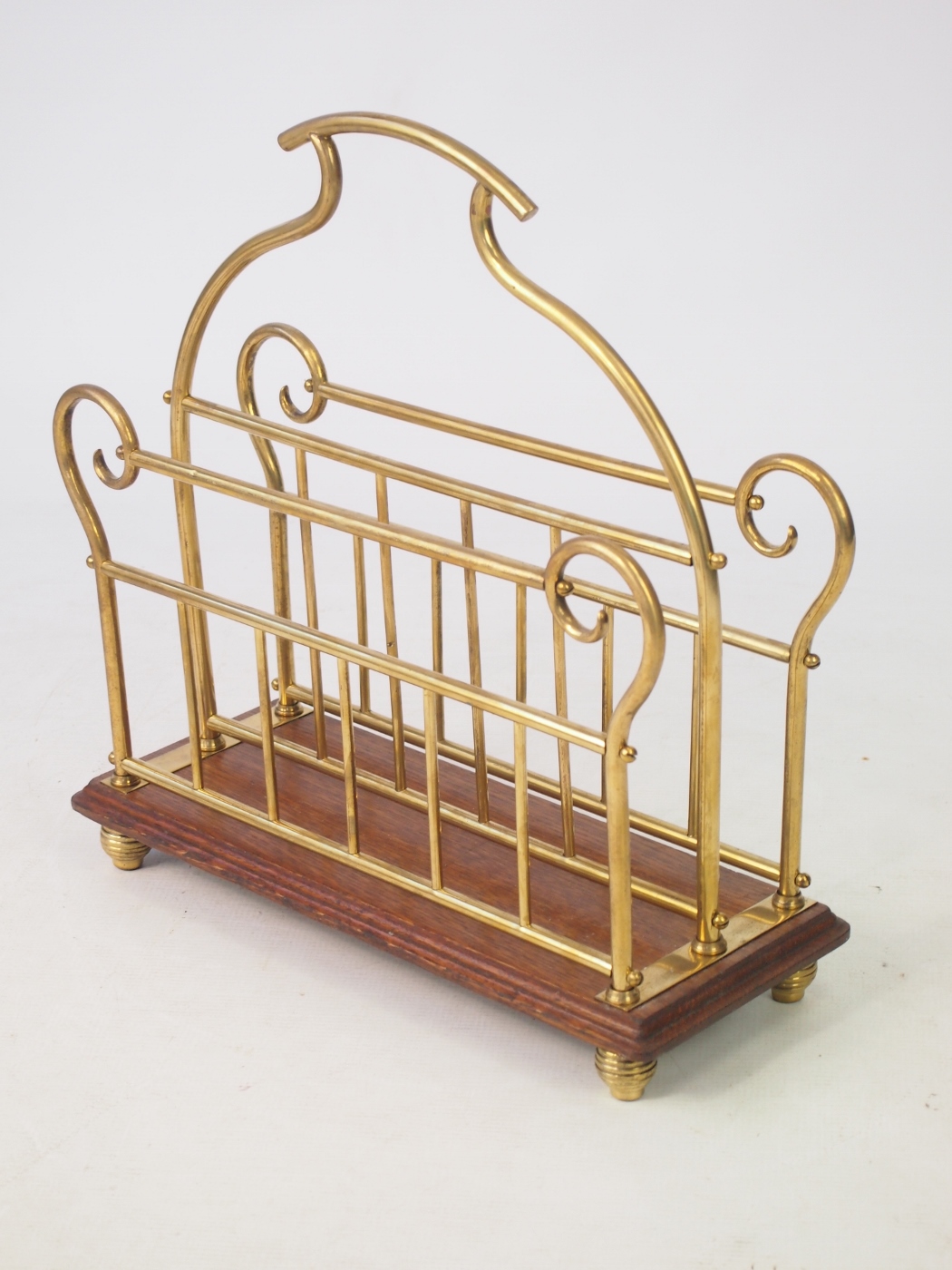 Edwardian Brass & Oak Newspaper Stand c.1905 (1 of 1)